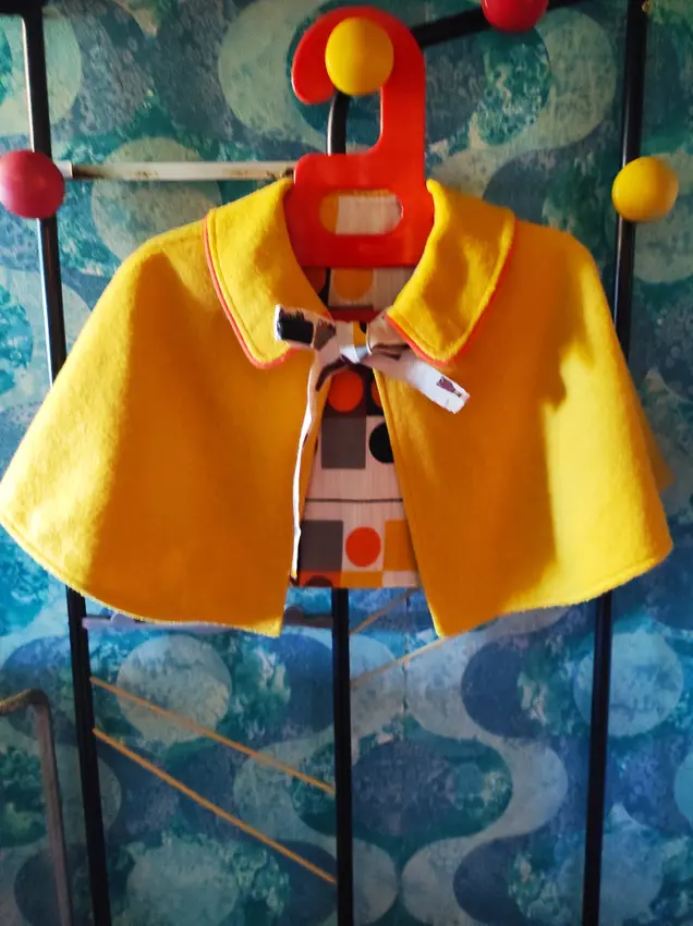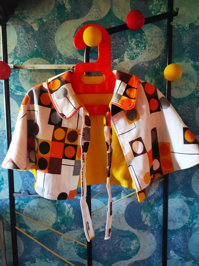 Petite cape d’épaules réversible faite main à partir de tissus vintage chinés 🧵