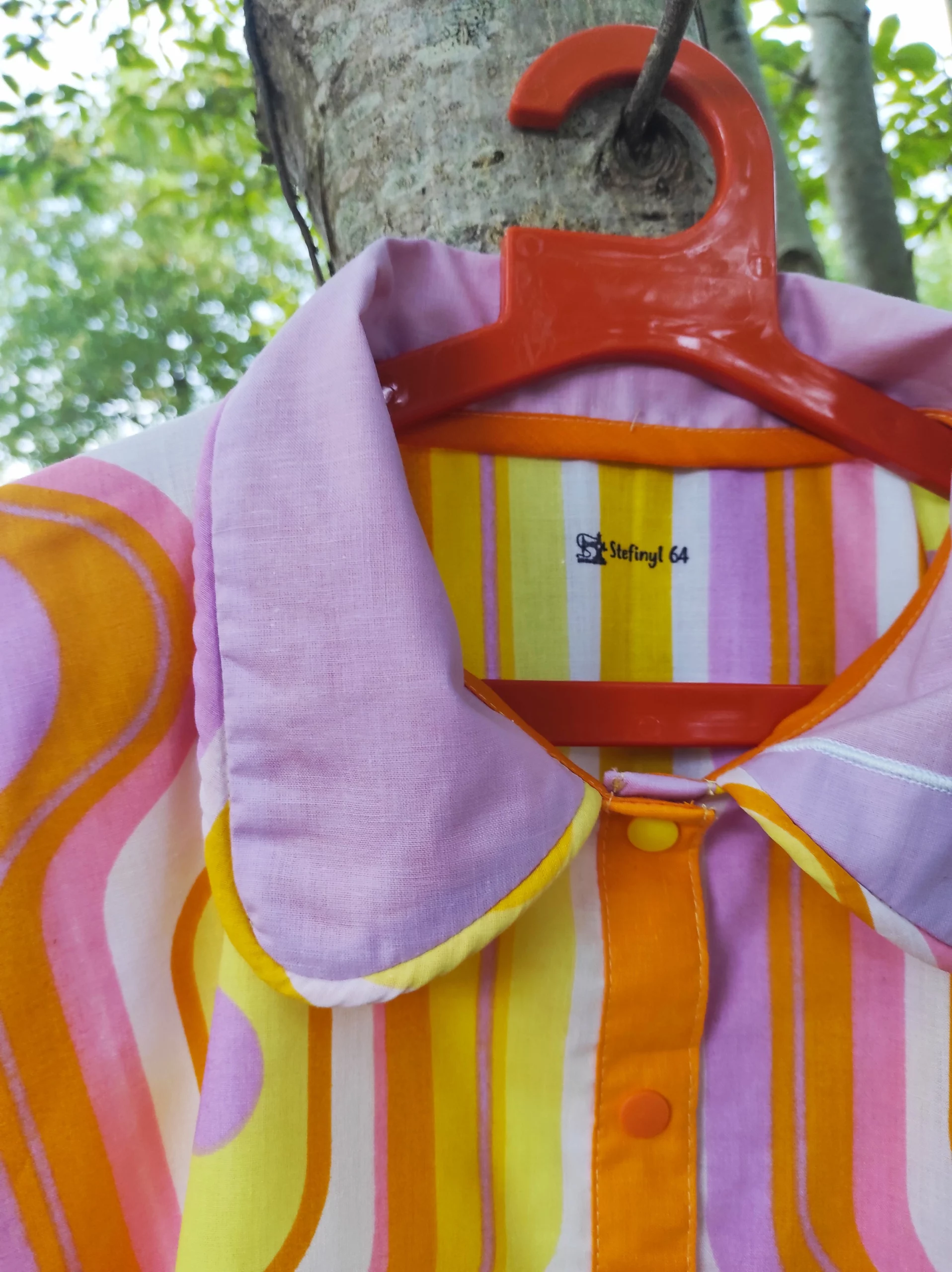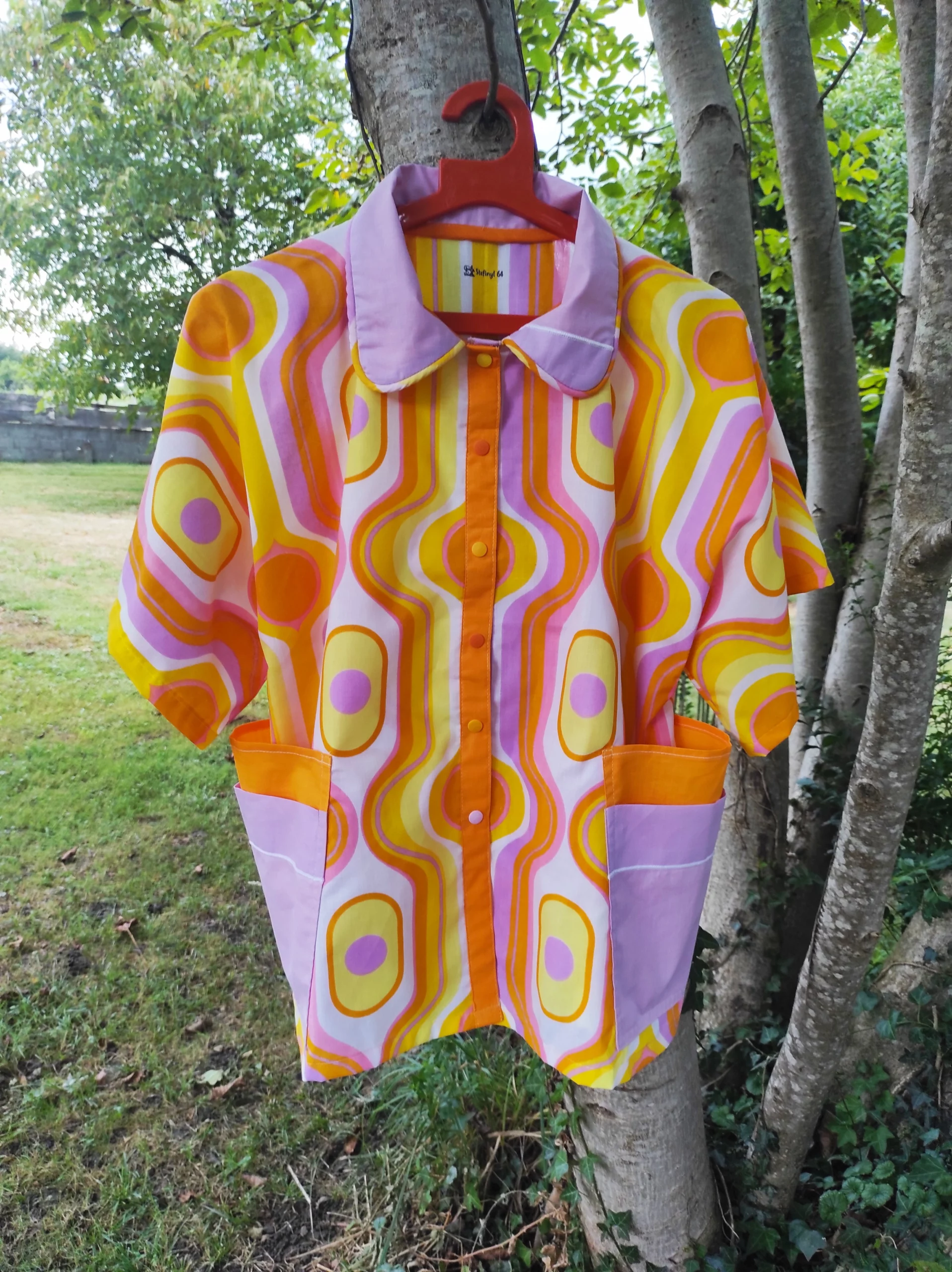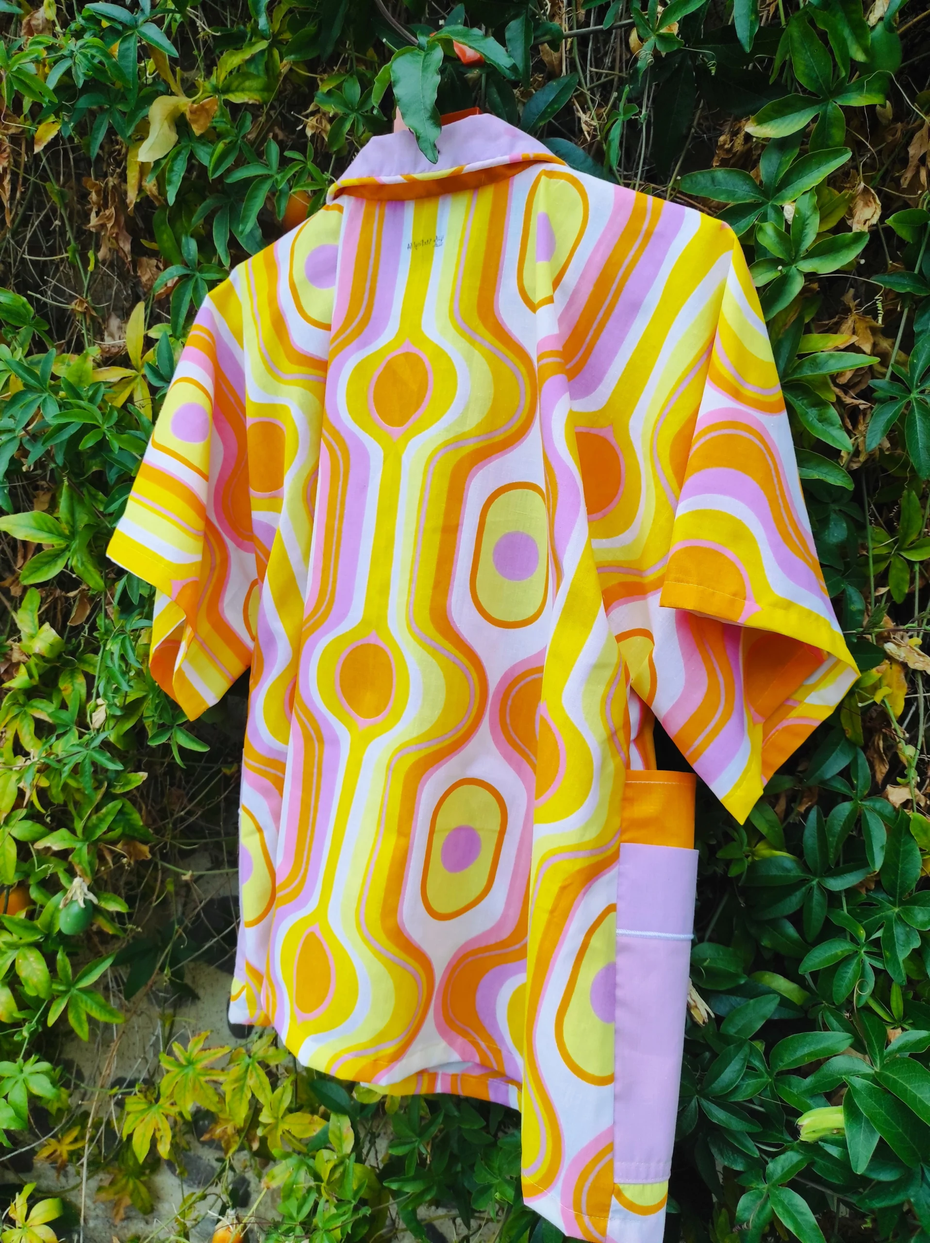 Cousue dans un drap des années 70 qui a vu plus de fondue et de pas de danse que toi en une vie, cette chemise est un concentré de good vibes.