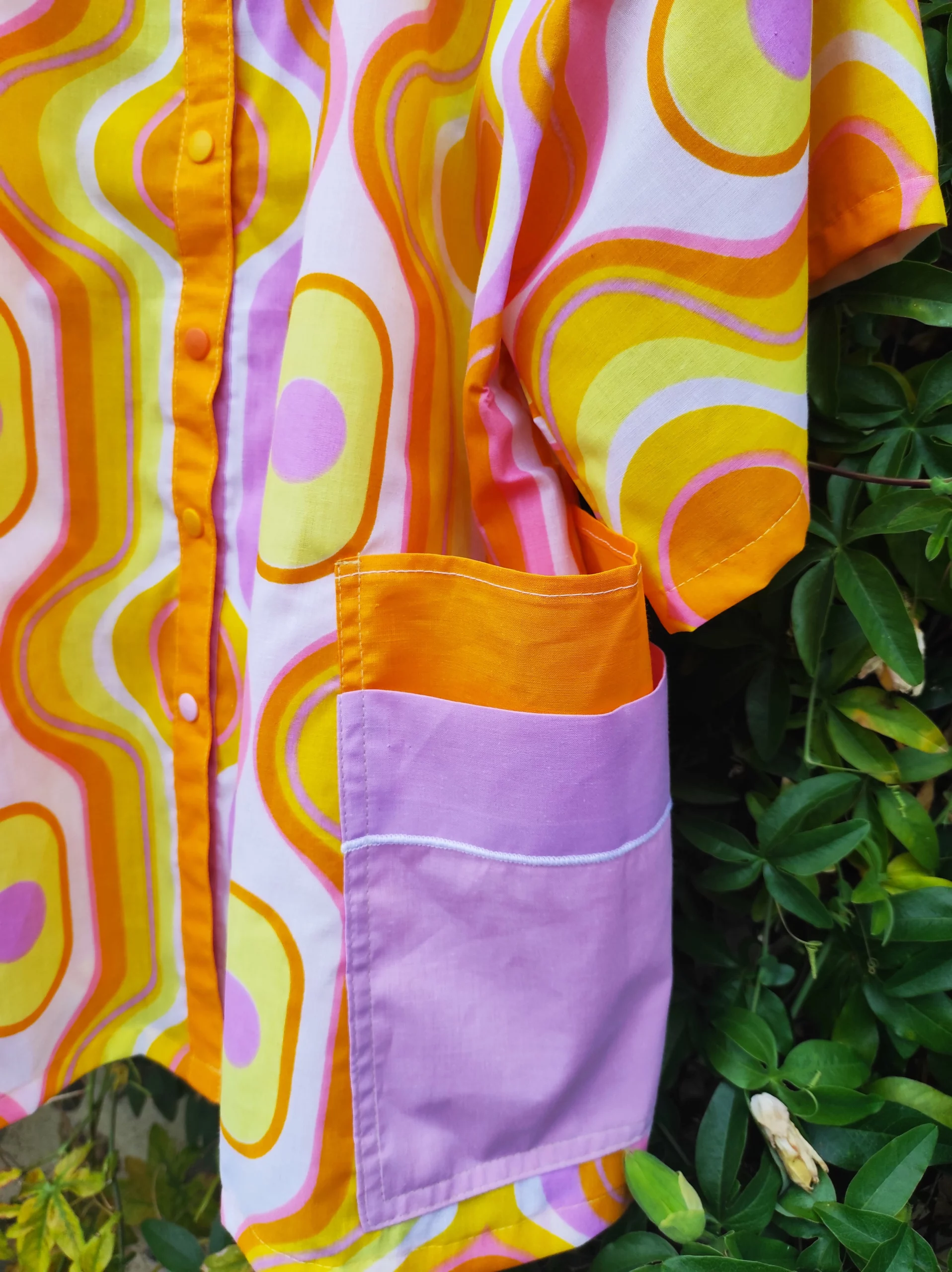 🌀 Chemise « Psyché Orange » – édition nappe disco