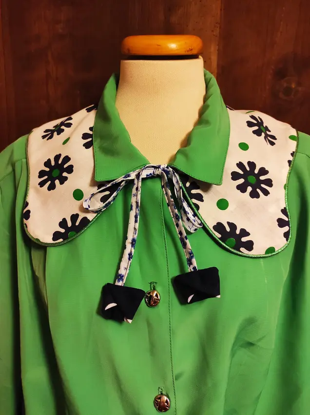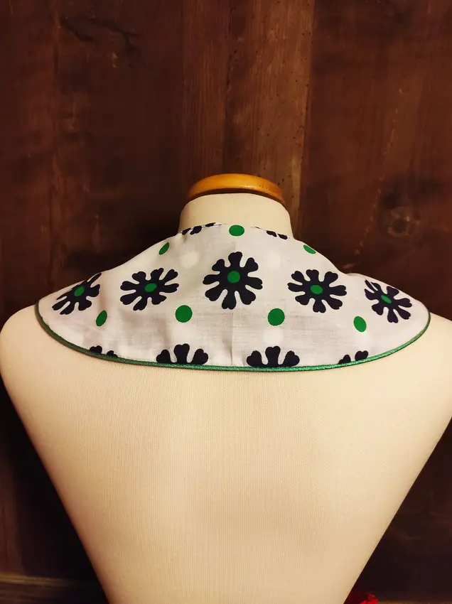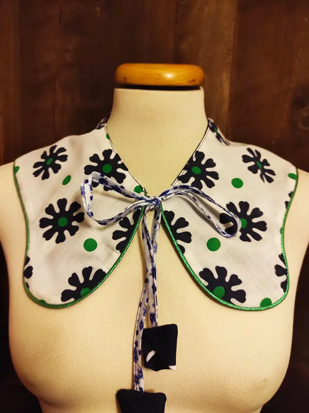 Ce col « Coup de Cœur Rétro » est l’accessoire parfait pour transformer n’importe quelle tenue, du simple pull au chemisier, en un clin d’œil ! Créé à partir de tissus vintage chinés avec soin, chaque face raconte sa propre histoire.
