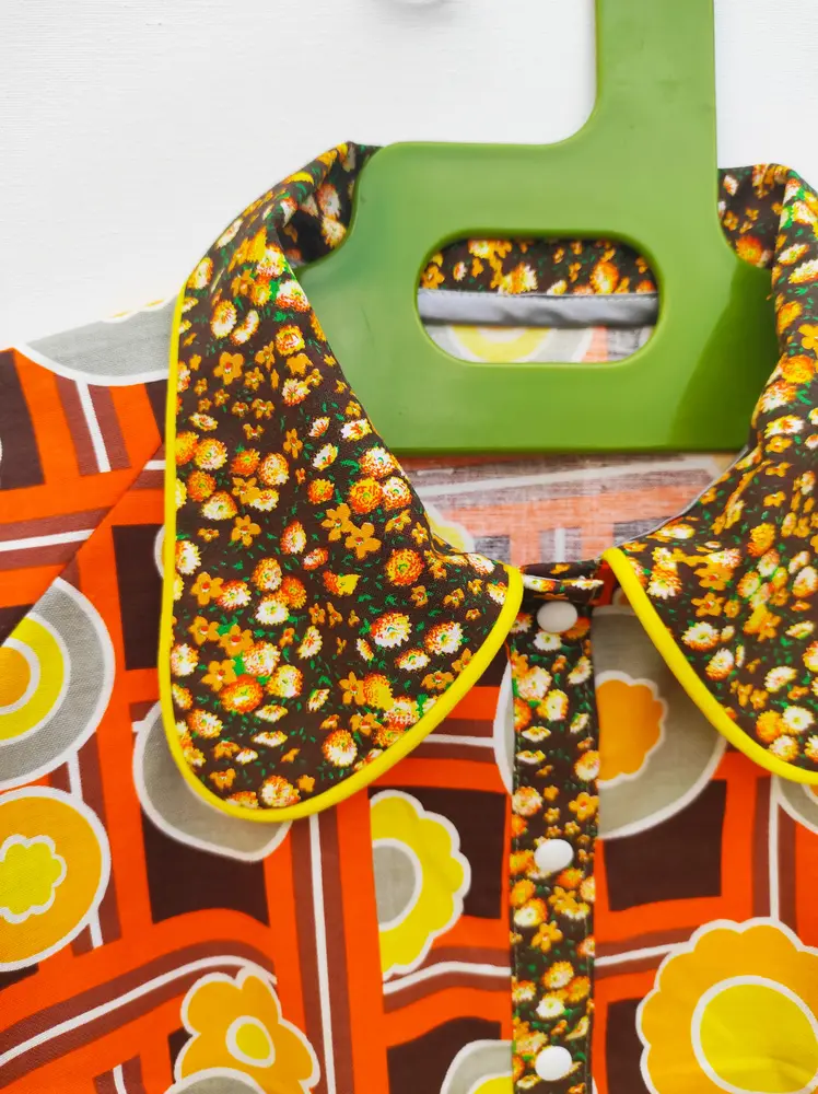 - Un col oversize en tissu à petites fleurs marron et jaunes. 🌸